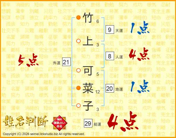 竹上可菜子さんの外運は21画の5点!