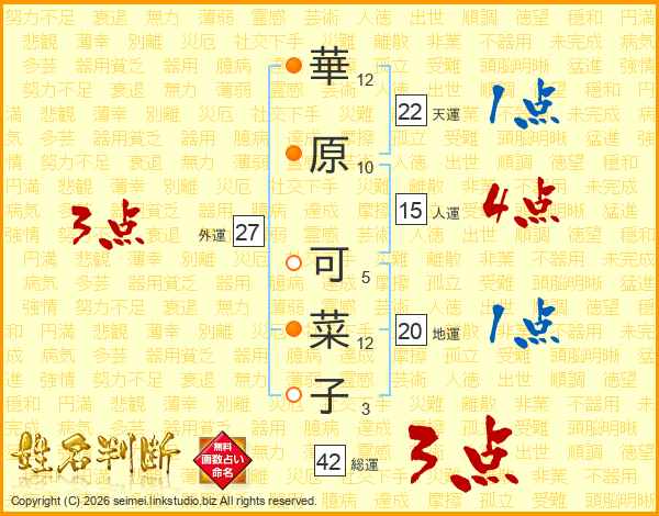 華原可菜子さんの総運は42画の3点!