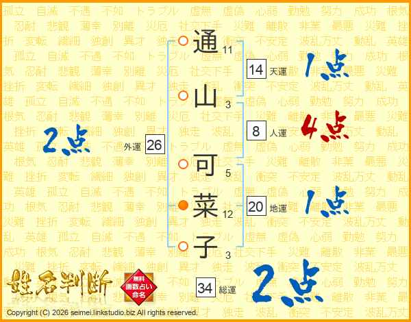 通山可菜子さんの総運は34画の2点!