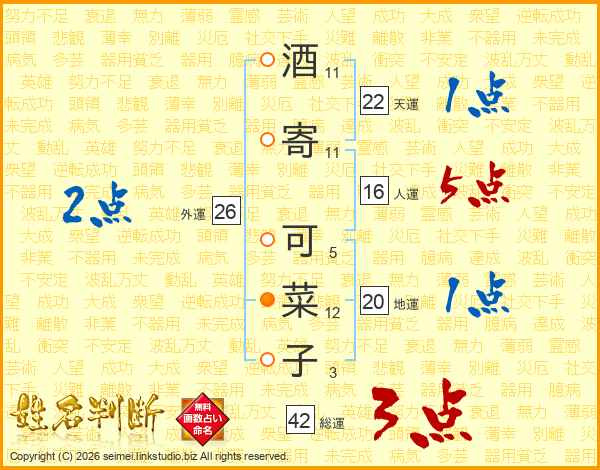 酒寄可菜子さんの総運は42画の3点!