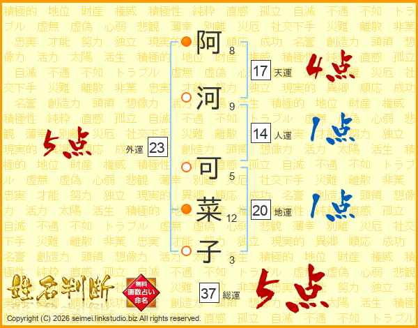 阿河可菜子さんの総運は37画の5点!