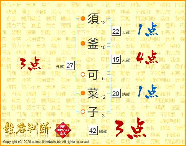 須釜可菜子さんの総運は42画の3点!
