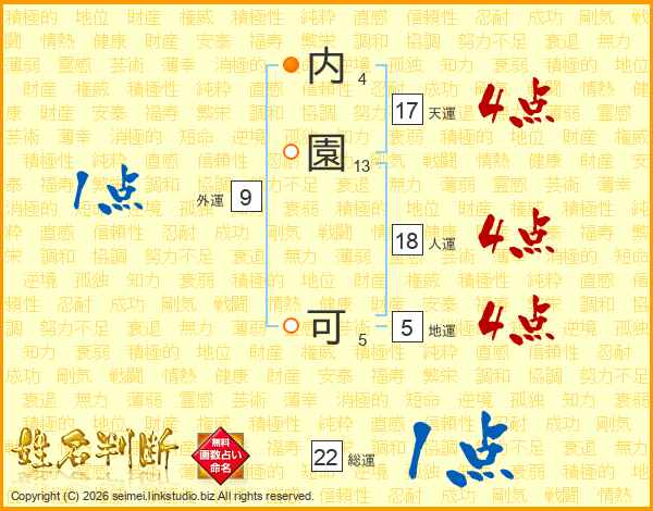 内園可さんの天運は17画の4点!