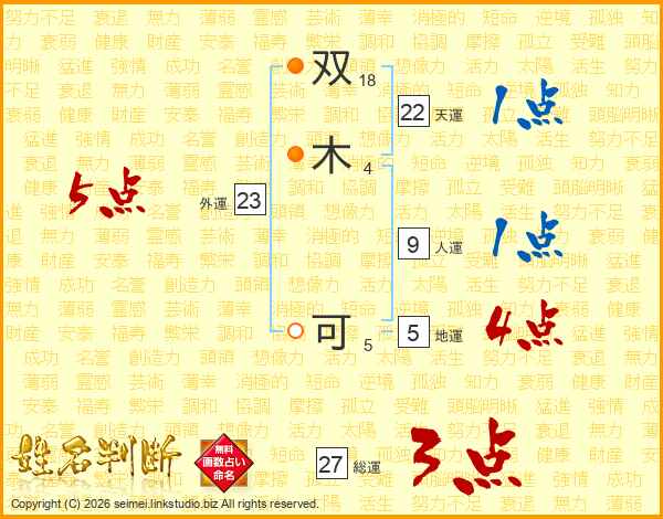 双木可さんの総運は27画の3点!