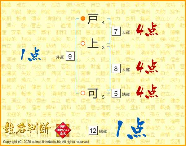 戸上可さんの総運は12画の1点!