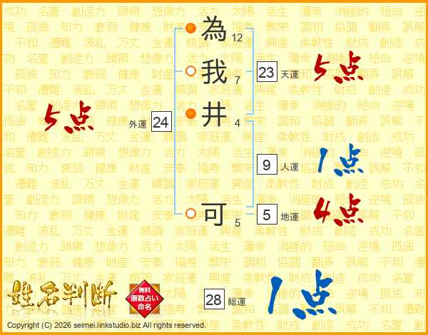 為我井可さんの総運は28画の1点!
