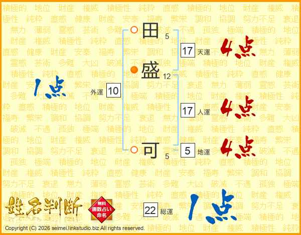 田盛可さんの総運は22画の1点!