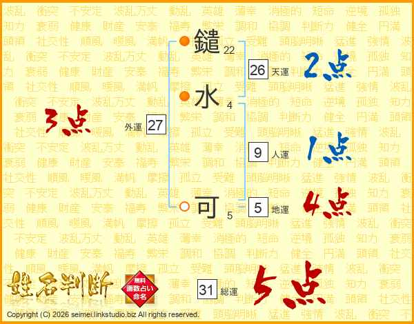 鑓水可さんの天運は26画の2点!