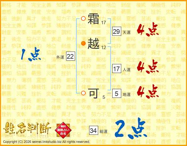 霜越可さんの総運は34画の2点!