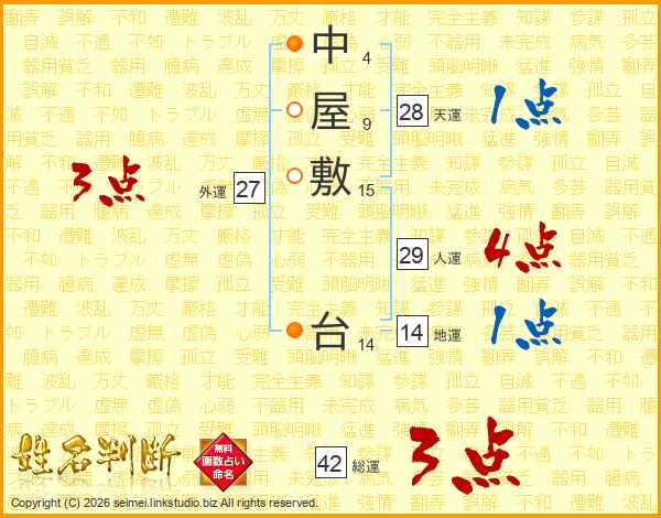 中屋敷台さんの人運は29画の4点!