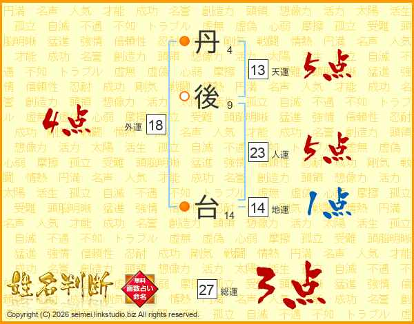 丹後台さんの総運は27画の3点!