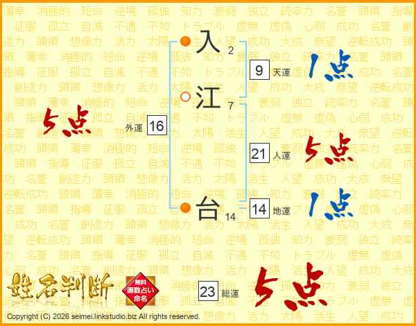 入江台さんの総運は23画の5点!