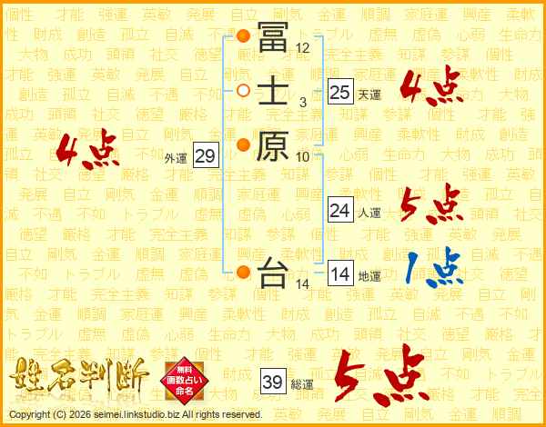 冨士原台さんの総運は39画の5点!