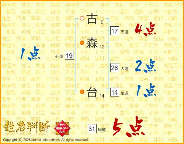 古森台さんの総運は31画の5点!