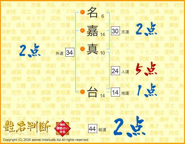 名嘉真台さんの総運は44画の2点!