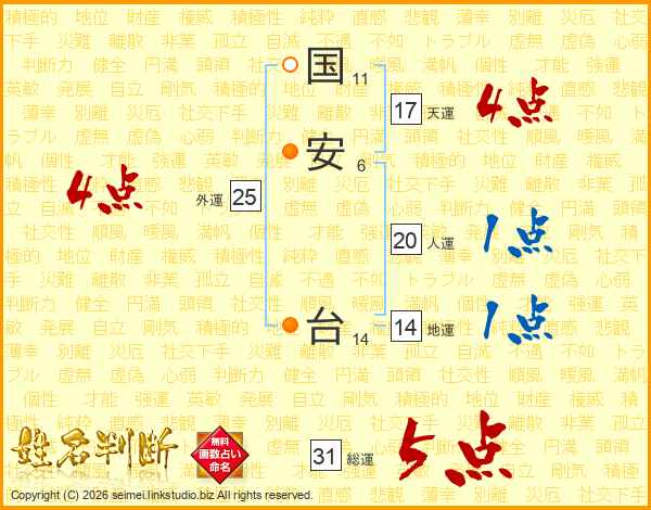 国安台さんの総運は31画の5点!