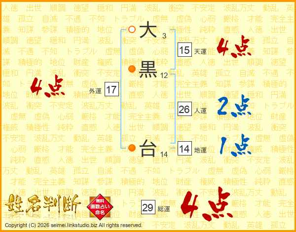 大黒台さんの人運は26画の2点!