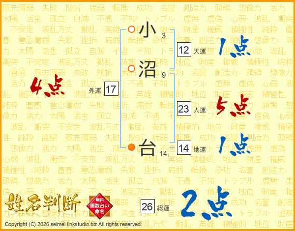 小沼台さんの人運は23画の5点!