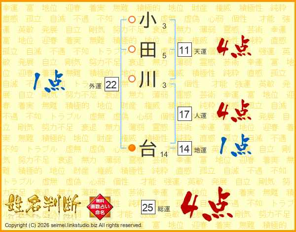 小田川台さんの人運は17画の4点!
