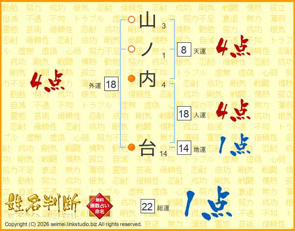 山ノ内台さんの総運は22画の1点!