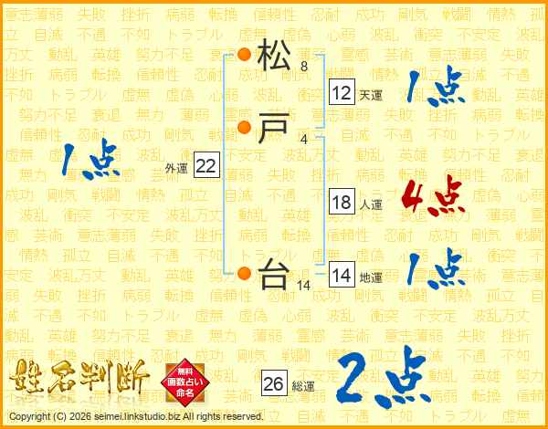 松(8画)戸(4画) 台(14画)