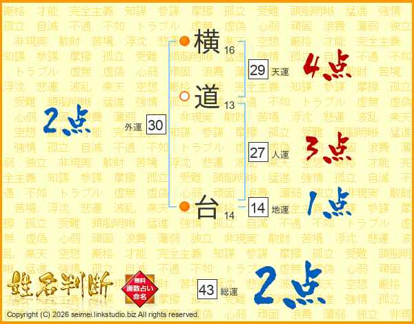 横道台さんの総運は43画の2点!