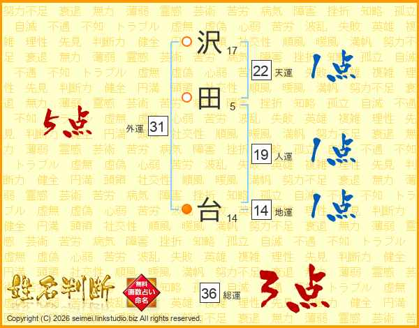 沢田台さんの天運は22画の1点!