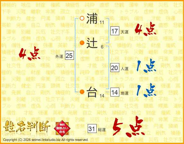 浦辻台さんの総運は31画の5点!