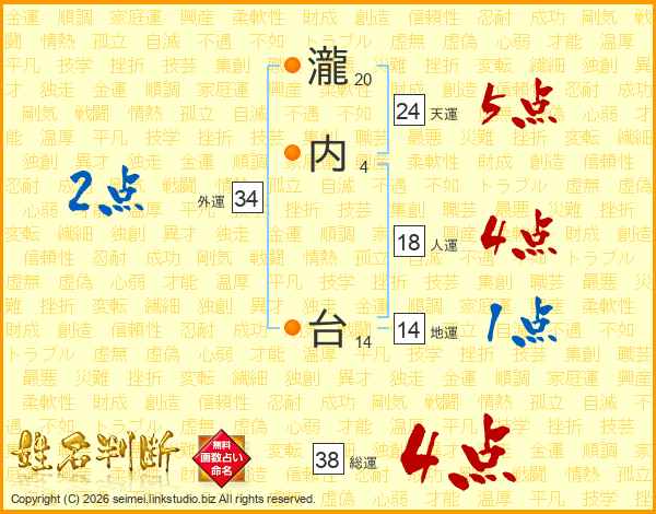瀧内台さんの総運は38画の4点!