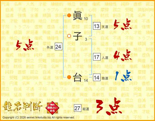 眞子台さんの総運は27画の3点!