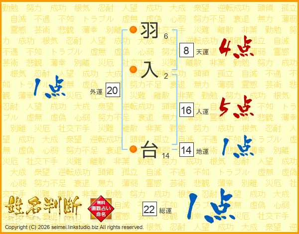 羽入台さんの総運は22画の1点!