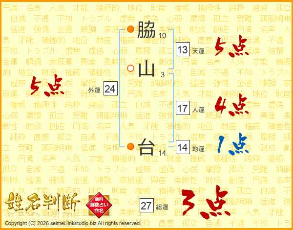 脇山台さんの地運は14画の1点!