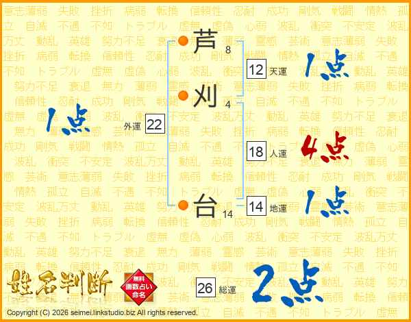 芦刈台さんの総運は26画の2点!