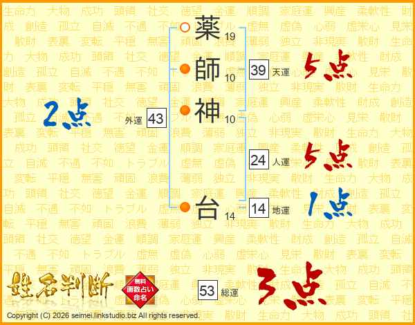 薬師神台さんの総運は53画の3点!