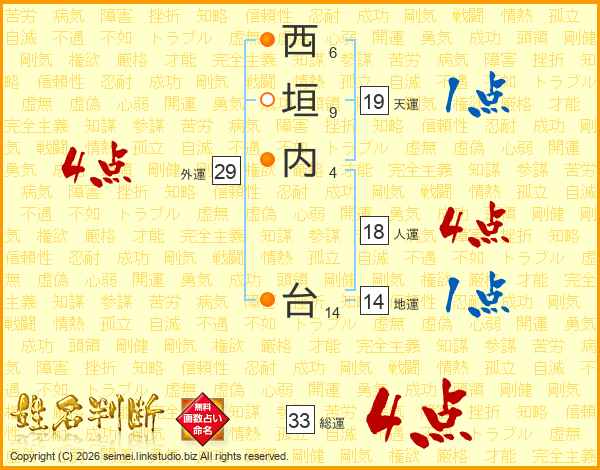 西垣内台さんの総運は33画の4点!