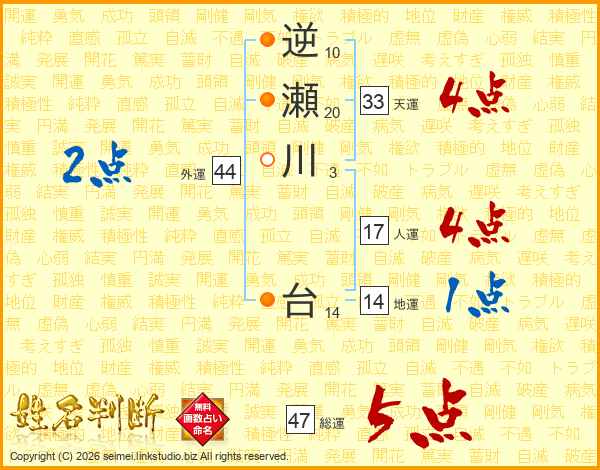逆瀬川台さんの総運は47画の5点!
