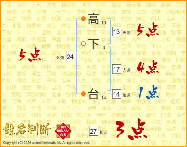 高下台さんの総運は27画の3点!