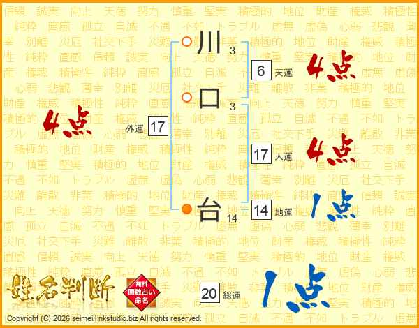 川口台さんの人運は17画の4点!