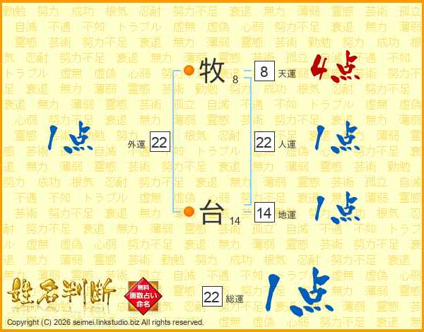牧台さんの総運は22画の1点!