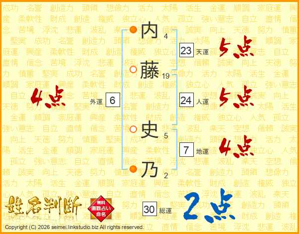 内(4画)藤(19画) 史(5画)乃(2画)