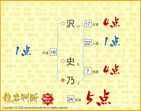 沢(17画) 史(5画)乃(2画)