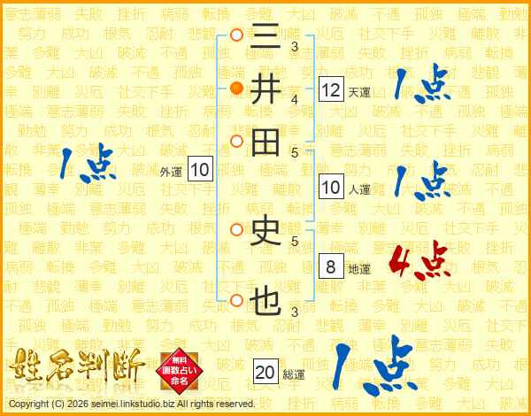 三井田史也さんの総運は20画の1点!