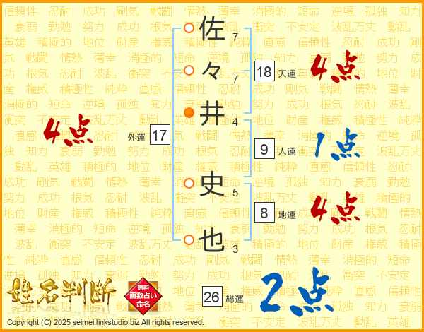 佐(7画)々(7画)井(4画) 史(5画)也(3画)