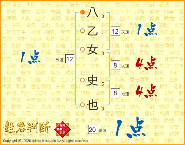 八乙女史也さんの総運は20画の1点!
