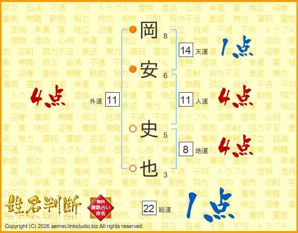 岡安史也さんの人運は11画の4点!