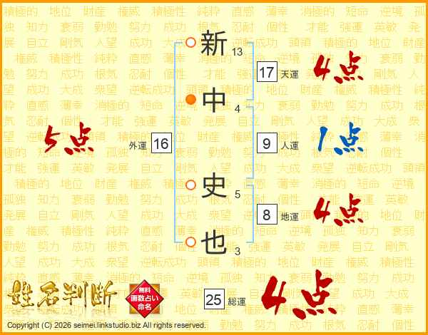 新中史也さんの総運は25画の4点!