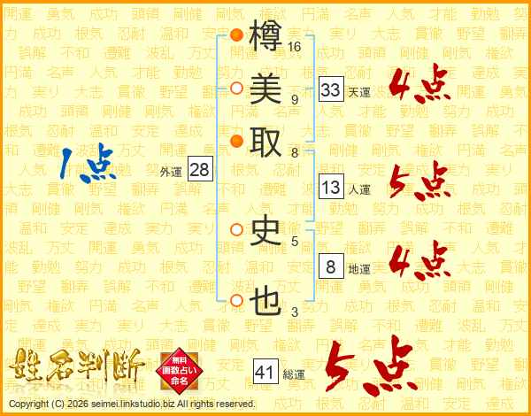 樽美取史也さんの総運は41画の5点!