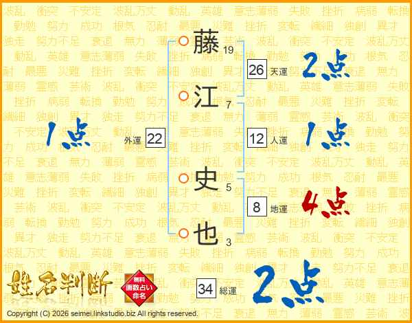 藤江史也さんの天運は26画の2点!