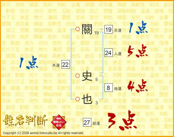 關史也さんの総運は27画の3点!