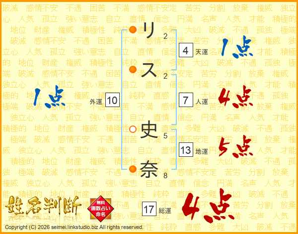 リス史奈さんの人運は7画の4点!